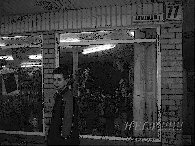 Русский Lietuvishkai Городская редакция ищет добровольцев для расследования загадачного происшествия. Последнюю неделю творятся странные вещи... В ящике стола главного редактора каждый день в 18.00 появляется снимок цветочного киоска. Каждый день - одна и та же фотография с надписью "Помогите!!!!!!". Все фото абсолютно идентичны... „Miesto“ redakcija skelbia savanorių paieška, kurie išnagrinės keistą įvykį. Paskutinę savaitę vyksta keisti dalykai... Kasdien, vyr. redaktoriaus stalo stalčiuose 18:00 atsiranda nuotrauka su užrašu "Padėkite!!!!!!" Visos nuotraukos vienodos... При этом редакция сообщает, что уже была предпринята попытка расследования украинским специалистом по паранормальным явлениям Сергеем Фигасе. Он бесследно исчез в прошлую субботу. В тот-же вечер редактор получил смс-сообщение: "Нашёл место у цв" Redakcija sako, kad jau buvo pasamdytas ukrainietis paranormalių įvykių specialistas Sergej Figase. Jis dingo be žinios praėjusį šeštadienį. Ta pati vakarą rеdaktorius gavo sms į savo mobilųjį telefoną: "Radau vietą prie ge" Последние новости!!!!!! В столе у редактора в этот раз появилась новая фотография! Раньше появлялись только такие: Paskutines naujienos!!!!!! Šįkart pas redaktorių atsirado nauja nuotrauka! Iki šiol buvo tik tokios: Но в этот раз на фотографии запечатлён не только странный человек просивший о помощи, но и Сергей Фигасе! Bet dabar nuotraukoje užfiksuotas ne tik keistas žmogus, prašantis pagalbos, bet ir Sergej Figase! СТАРТ! =) (здесь, не опаздывайте) STARTAS! =) (čia, ne veluokite) Все коды будут записаны в формате EN3666........ (кроме бонусов, конечно) Картинок на самих страницах не будет, будут только линки на них (надеемся, это ускорит обновление страниц и поможет избежать ненужного трафика). Цвета: зелёный оранжевый красный чёрный Visi kodai bus užrašyti formatu: EN3666....... (bonusų tai aišku, neliečia) Paveiksliukų pačiame puslapyje nebus, bus tik linkai i juos (tikimės, kad tai pagreitins puslapių krovimą ir sumažins trafiką) Spalvos: Žalia Oranžinė Raudona Juoda ___________________________________________ Игра планируется на 6-12 часов (на самом деле - фигушки вы её пройдёте за 6 часов) !!! Поэтому - запасайтесь кофе, энергией, бутербродами, настроением. Силами. Сливов не будет. Ни одного. Злые бонусы штабу и экипажам - и не надейтесь найти ответ в инете за 5 минут.. Минимум - пол часа =) и то не факт, что выиграете больше, чем потеряете. Для игры вам понадобятся: Экипажам: Знамя Лопата (или лопатка) Тем, кто не умеет видеть в темноте - фонарики Компас Медленно бегающим экипажам - транспорт (трасса около 100 км) Штаб: Гугл-земля Мозг (желательно) Примечания: "Конкурса одиночек" - не будет =((( Извините. _____________________________________ Žaidimas yra planuojamas 6-12 val. (net nesitikėkite žaidimą baigti per 6 valandas..)!!! Todėl pasirūpinkite energija, kava, sumuštiniais, nuotaika, jėgomis. Nei vieno kodo patarimuose nebus. Sunkūs bonusai štabui ir laukui - ir nesitikėkite surasti atsakymą internete per 5 minutes. Minimum pusvalandis =) ir tai ne faktas, kad laimėsite daugiau, negu prarasite. Žaidimui jums prireiks: Laukui: Vėliava Kastuvas (arba kastuvėlis) Nemokantiems matyti tamsoje - prožektoriukai Kompasas Lietai bėgančiam ekipažui - transporto priemonės (trasa apie 100 km) Štabui: Google-earth Smegenų (pageidautina..) Pastabos: "Vienišiaus konkurso" - nebus. =((( Atleiskite.